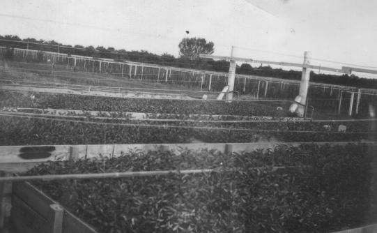 Most of the research farm was planted to citrus, with, later, opium poppies in the field nearest to the main road, the Old Willbriggie Road. Farm 466 was acquired for more citrus planting and became the site of a long-term experiment. The Citrus variety orchard, at the back of the home farm buildings, must have been planted around the same time as 466, because it was there in the early 1950s [Dic Bouma] but it was removed in the late 1970s. A grape farm, number 87 at Bilbul, was cleared and used for vegetable production during World War 2 [3] but was sold afterwards. Because the soils there were heavy it also served for soil reconditioning trials. The CSIR Division of Soils had carried out a soil survey of horticultural soils in the 1930s and this stimulated projects at the Station on soil science [11]. CSIR became CSIRO in 1949.
