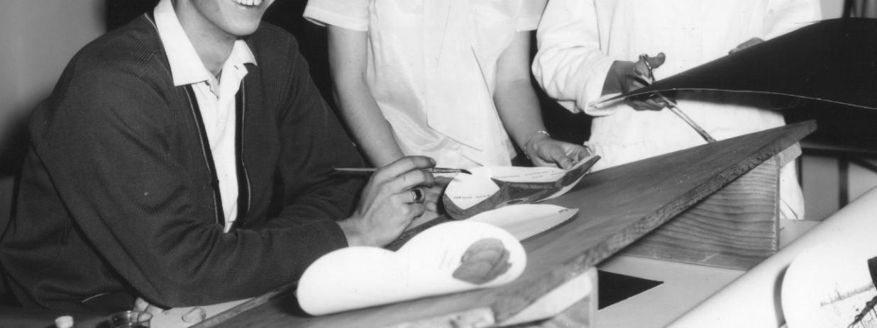 The CSIRO men’s hockey team in 1965, victorious after their only match (against the CSIRO women).