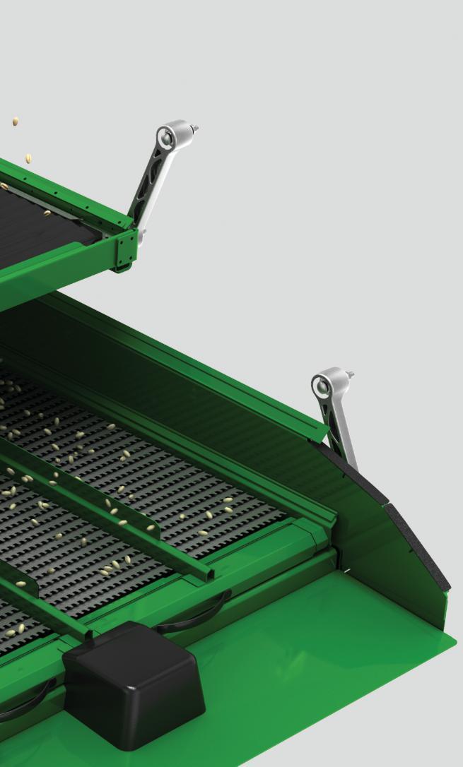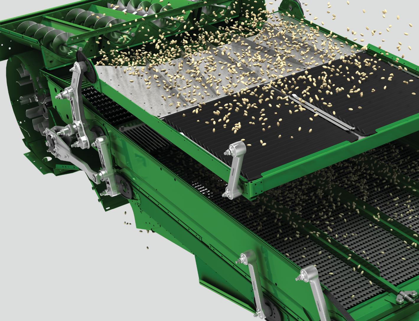 The dual chaffer adjustment offers improved grain tank cleanliness and greater tailing performance.