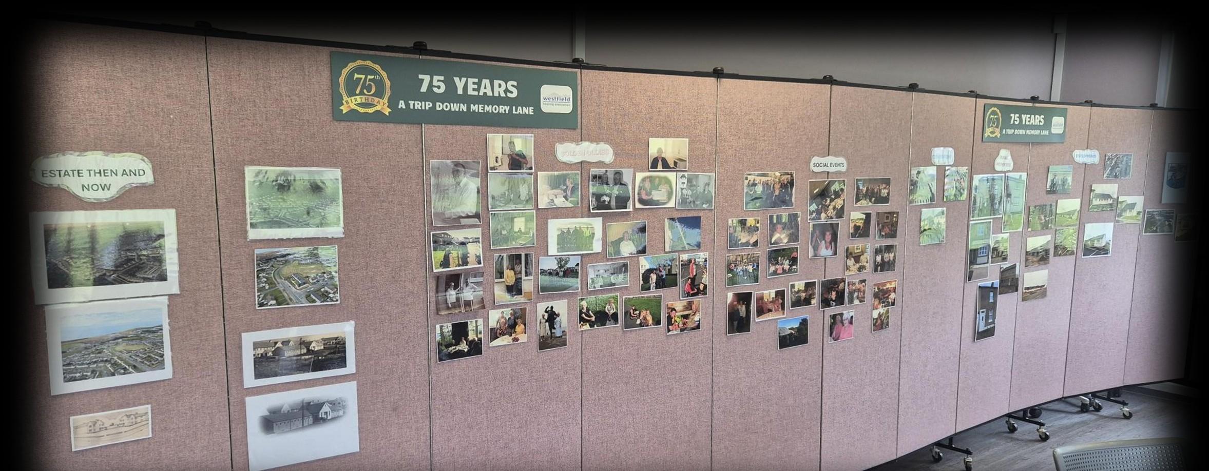 To mark our anniversary, we displayed historical photos from Westfield’s archives in our meeting room, allowing tenants to enjoy a trip down memory lane with tea, coffee, and a slice of our 75th birthday cake.