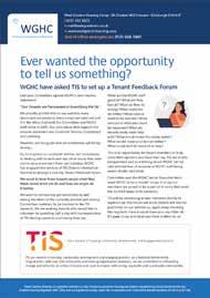 You may remember that in the last (Autumn) newsletter, it was announced that WGHC had engaged the Tenant Information Service (TIS), to write out to all tenants seeking volunteers to come to a Tenant Forum and provide their views and insights as to how WGHC staff service levels are perceived and what might be done to make improvements.