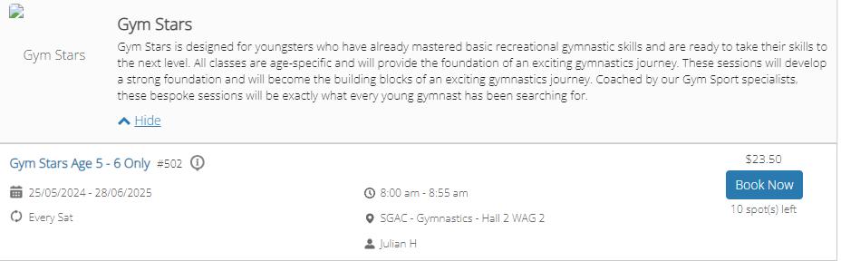 3. Locate the class you would like to book into and select ‘Book’