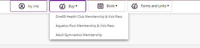 Under the ‘Buy’ tab you will be able to purchase Memberships and Visit Passes.