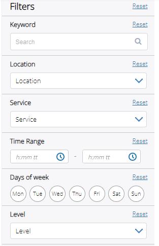 *Note you can use the filters on the side to look for specific days and times.