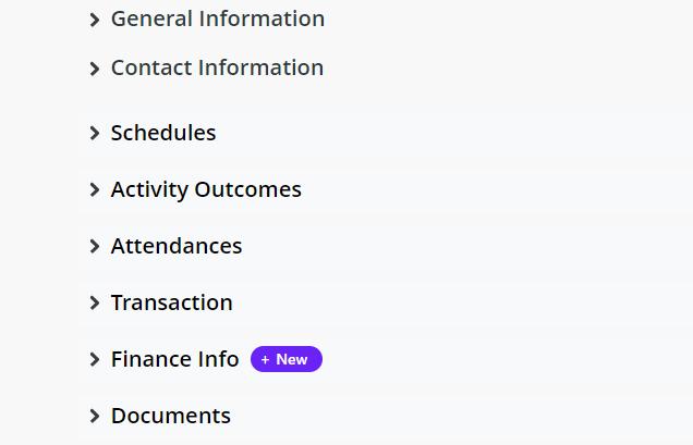 2. Select ‘New’ beside Finance Info
