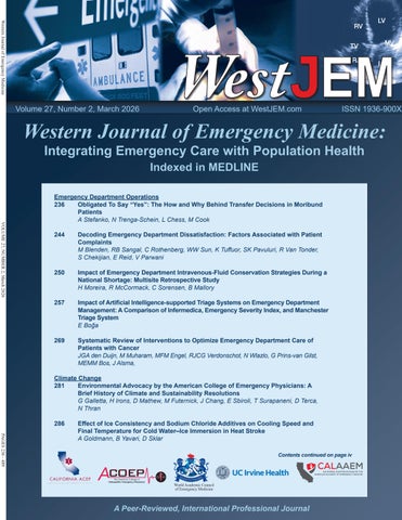 Western Journal of Emergency Medicine: Integrating Emergency Care with Population Health Emergency Medicine is the specialty which most closely reflects societal challenges and consequences of public policy decisions. The emergency department specifically deals with social injustice, health and economic disparities, violence, substance abuse, and disaster preparedness and response. This journal focuses on how emergency care affects the health of the community and population, and conversely, how these societal challenges affect the composition of the patient population who seek care in the emergency department. The development of better systems to provide emergency care, including technology solutions, is critical to enhancing population health.
