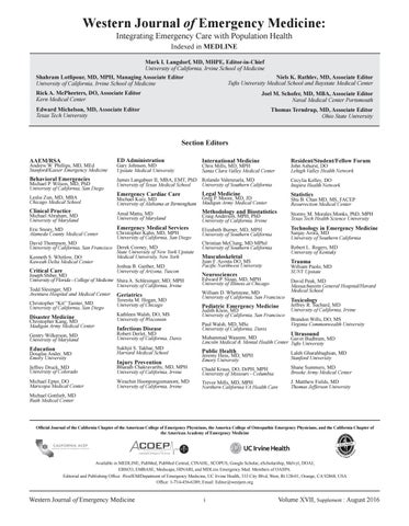 Official Journal of the California Chapter of the American College of Emergency Physicians, the America College of Osteopathic Emergency Physicians, and the California Chapter of the American Academy of Emergency Medicine