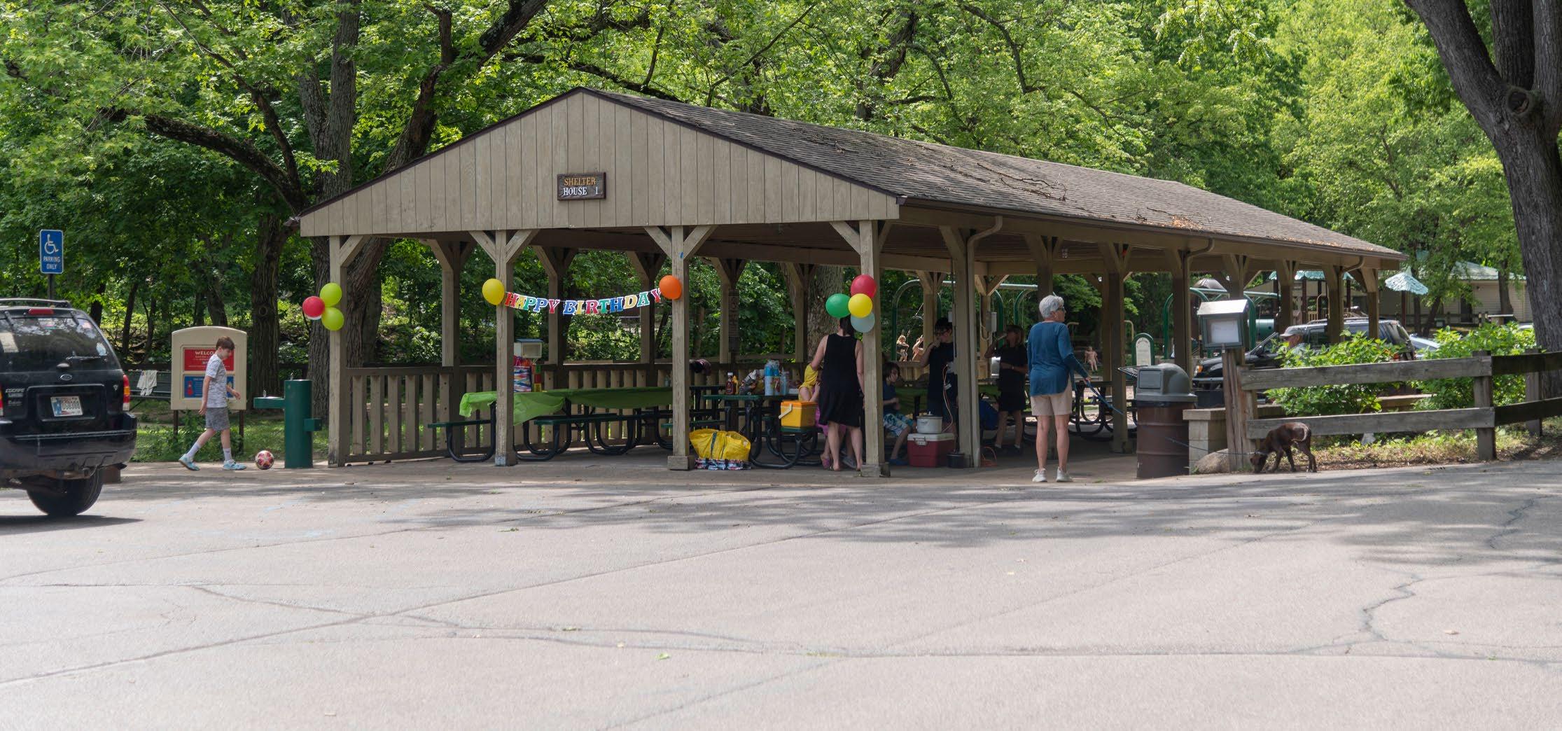Happy Hollow Park is home to 2 playground sets, open fields, a sand volleyball pit, a dog park, and miles of paved trails. Happy Hollow shelters are available 8:00 AM – dusk, April 1 – October 31. Shelter rentals have a 5-hour minimum. Parking is limited.