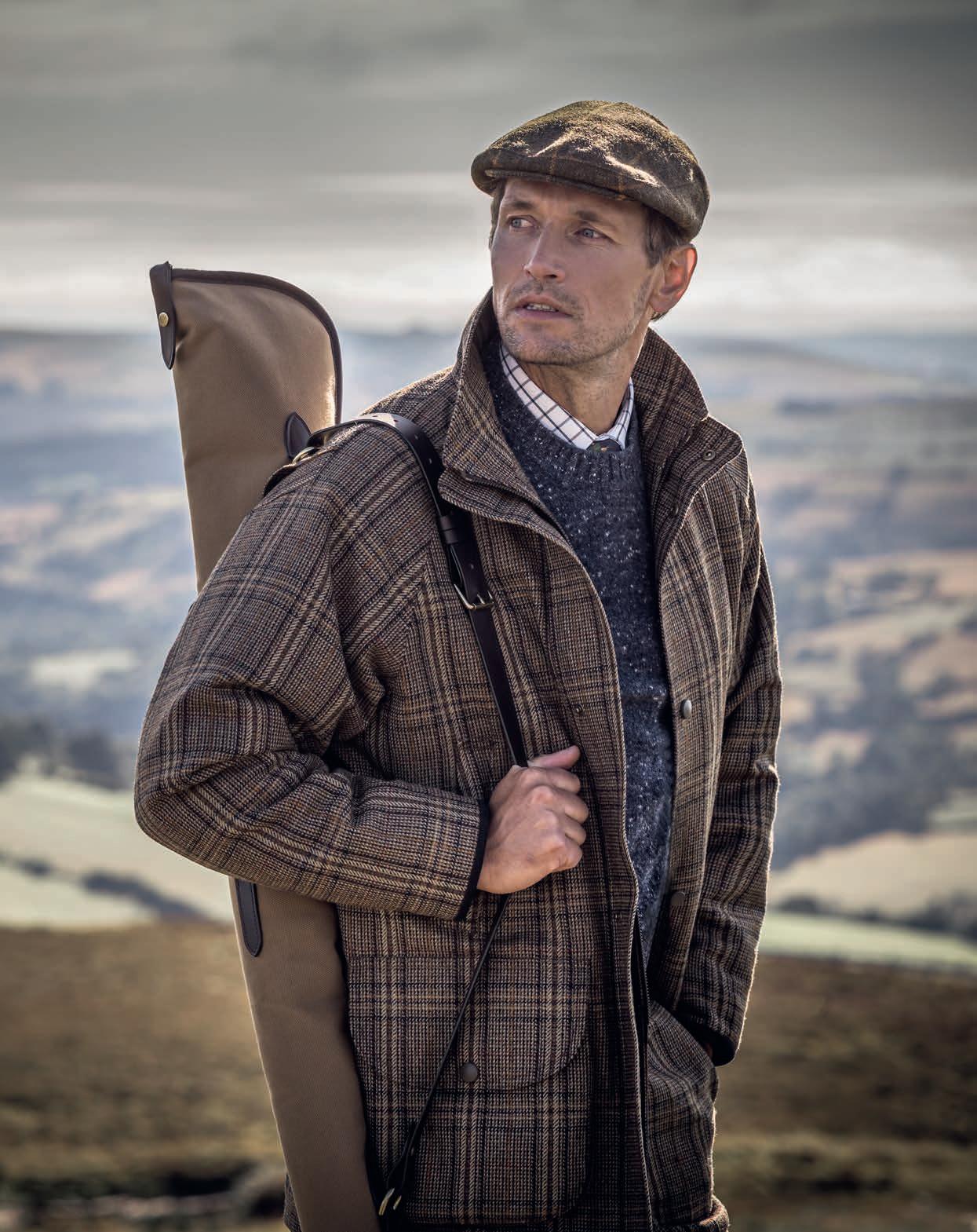 tattersall shirt Cotton £125 | $185 game bird silk tie in rust Silk £98 | $145 shooting socks Alpaca Wool £325 | $479 redford cap Wool Tweed £90 | $135 100rd anson cartridge bag Canvas & Leather From £595 | $875 ladies verdi vest Wool Tweed with Fur Trim £395 | $585 ladies york tweed trousers Wool Tweed £225 | $335 albert trilby in emerald Beaver Fur Felt £495 | $730 feather hat pin English Feathers £79 | $120 dog lead Leather £98 | $145 hand detachable lock shotgun From £89,500