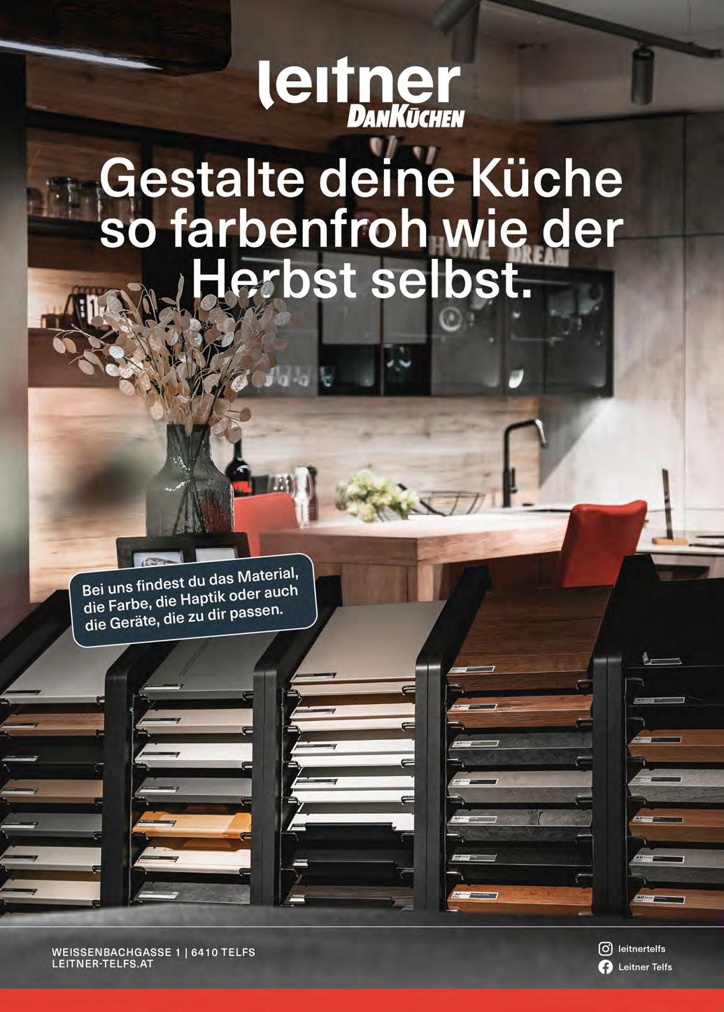 zeitschrift für den wirtschaftsraum telfs Österreichische Post AG RM 94A641006 K • 6 410 Telfs Nr. 14 • 4. November 2022 n Scharf, schärfer, Rief! Waltraud und Helmut Rief vom Hattingerberg (Titelbild) bewegen sich beruflich & privat auf »Messers Schneide« Foto: Offer In dieser Ausgabe BEILAGE RK TELFS-INFO 2022 in den Gemeinden Telfs, Rietz, Wildermieming, Pettnau, Pfaffenhofen, Oberhofen, Flaurling und Polling Hag 4a TELFS Mobil: +43 (0)676 6054050 Email: ruschharald@telfs.com Der beste Service ELEKTRO GMBH Obermieming 179, Tel. 0 52 64 - 52 16 office@elektrofalch.at, www.elektrofalch.at Elektrohandel Elektroinstallationen TV- und Hifi-Anlagen Tischreservierung: Tel. 05264 5240 Wir laden Euch ab 25. Nov. 2022 herzlich ein, Eure festliche Weihnachtsfeier bei uns am Gerhardhof zu verbringen und Euch von unserem Küchenteam kulinarisch verwöhnen zu lassen. Gasthof Gerhardhof, Wildermieming Betriebsurlaub: 03. 23. Nov. 2022 Wir freuen uns auf Euch!