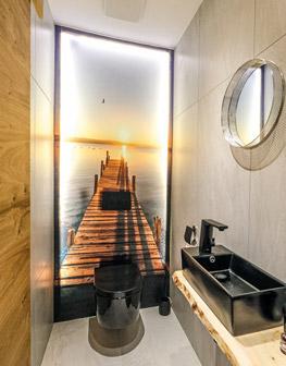 das außergewöhnlich gestaltete Gäste-WC, wobei sie auch die Kü che und das Schlafzimmer zu ih ren favorisierten Aufenthaltsorten zählt.