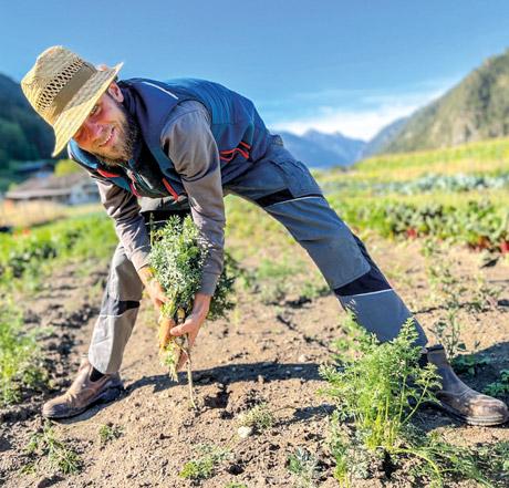 Maximilian Buchhammer ist in je dem Fall ein visionärer Geist, der stets den Blick über seinen Gar tenzaun wagt. Wobei sich der Blick hinein auch lohnt – insge samt wird auf dem Demeter-Be trieb ein Feldgemüseanbau bewirt schaftet. Angebaut werden aktuell 30 Demeter-zertifizierte Kulturen, etwa Wurzelgemüse, Blattgemüse, darunter sogar die Rarität des Hirschhornwegerichs. Hinzu ge sellen sich Fruchtgemüse wie Erb sen, Fisolen, Stangenbohnen, Phy salis, sowie ein Kräuteranbau: „Für 2023 ist eine Erweiterung ge plant“, lässt der ambitionierte Landwirt wissen und erzählt, dass seine Abnehmer in erster Linie Gastronomiebetriebe und Privat personen sind. Neben dem Anbau von Gemüse werden am Hof auch Tiere gehalten – darunter Haflin ger, Alpine Steinschafe, Wachteln und Hasen. „Mein Wunsch ist es, dass mein Betrieb aus sich heraus existieren und ich von der Land