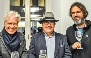 9 Auch Manfred Thurner, alias Kut te, hatte stimmlich seinen Beitrag zur Ausstellung geleistet und gönnte sich einen Hoangart mit Ehefrau Brigitte Thurner und Wer befachmann Peter Perktold.