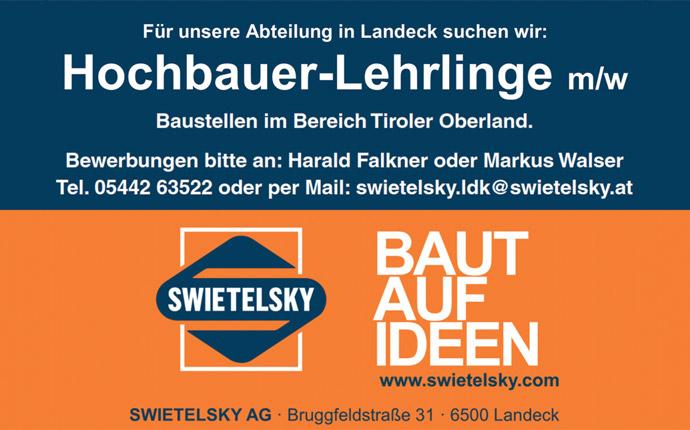 Marcel Bock Tel. 05442 / 61 222 Fax: 05442 / 61 222-15 Handy: 0664 / 81 88 758 Mail: info@fliesenbock.at Hasliweg 4e 6500 Landeck/Tirol Prutz, Sauersteinweg 1a, Hintergasse 4 Telefon 05472-28097 E-Mail: office@gartenerlebnis-lutz.com www.gartenerlebnis-lutz.com Lebe Deinen Garten Dein erweiterter Wohnraum GARTENPLANUNG · GARTENBAU GARTENSERVICE · GARTENBOUTIQUE Richterhaus in Landeck: AuĂen historisch â innen modern