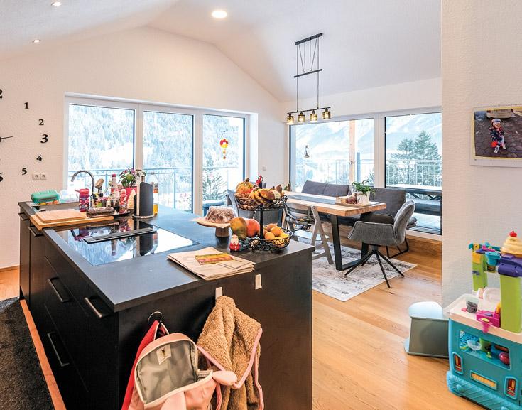 Viele LieblingsplĂ€tze LieblingsplĂ€tze im neuen Heim hat das Ehepaar viele: âEigentlich der ganze obere Bereich mit KĂŒche plus Esstisch, Terrasse und Wohnzimmer.â WĂ€hrend die Terrasse schon genutzt wird, muss der Garten noch finalisiert werden, lĂ€dt in weiterer Folge aber auch zum gemĂŒtlichen Verweilen ein. AusflĂŒge in die Berge bieten sich förmlich an: âDa wir ohnehin schon am Berg leben, können wir direkt von unserem Haus aus losstarten.â