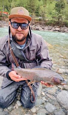 Der Zammer Fischer Alexander Ehrlich freut sich ĂŒber eine kapitale Ăsche, die er natĂŒrlich zurĂŒcksetzt.