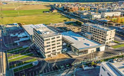 Abstellplätzen verbindet die Baukörper unterirdisch. Ein modernes Energieund Gebäudemanagement mit Photovoltaik und Wärmepumpenboiler sorgt für niedrige Betriebskosten. 1 Die neuen Wohngebäude wurden gut gelaunt von 2 Pfarrer Josef Scheiring (r.) gesegnet, NHT-GF Geschwentner (l.) und Bgm. Rothbacher freut’s und die neuen Bewohnerinnen (3) auch