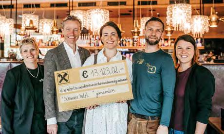„Schwarz hilft… grenzenlos“Fonds eingerichtet. Gerne können Anfragen und Anliegen für die „Schwarz hilft …“-Fonds an die Projektgruppe im Alpenresort Schwarz gestellt werden. Ansprechperson Martina Mareiler | Telefon 0664 910 58 58 | E-Mail: m.mareiler@schwarz.at Am Foto v.l.: Claudia-Hirn-Gratl, die Geschäftsleitung des Alpenresort Schwarz mit Franz-Josef, Katharina und Thomas Pirktl und Martina Mareiler