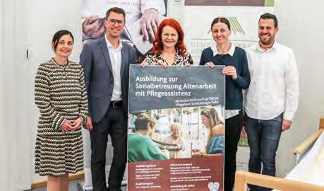 sich neben Schulabsolvent/innen einer mittleren oder höheren Schule auch an bereits in den Heimen tätige Mitarbeiter/-innen wie Heimhilfen sowie an alle Interessierten mit einer abgeschlossenen Berufsausbildung. Weitere Informationen: www.sob-tirol.tsn.at Am Foto v.l: Daria Wascher (Pflegedirektorin Gemeindeverband Altenwohnheim Telfs), Bgm Christian Härting, LRin Cornelia Hagele, Erika Eberl (SOB-Ausbildungskoordinatorin) und Matthias Kaufmann (Verwaltungsdirektor Gemeindeverband Altenwohnheim Telfs)
