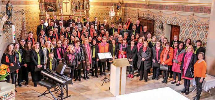 nellen Weisen zusätzlichen Schwung in das Konzertprogramm. Beim gemeinsamen Abschlusslied »Ein guter Tag zu Ende geht« vereinten sich die vier Chöre (am Foto) zu einem.