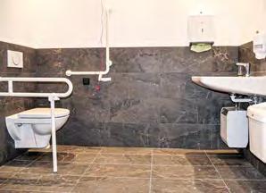 Die gewünschte (und auch bei Gemeindeämtern geforderte) Barrierefreiheit im neuen Amt wird nicht nur durch den Personenlift gewährleistet, auch das Leitsystem für Sehbehinderte, das im Empfangsbereich am Boden eingearbei-