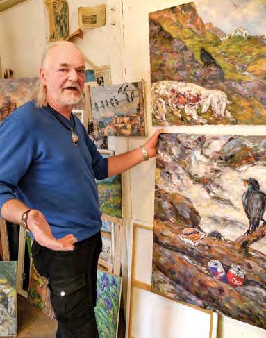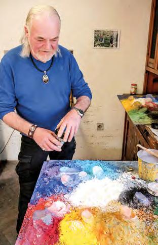 „Kunst kann auch entlarvend sein!“ Johann F. Reich mit seinen nicht-idyllischen Bildern. Die Farben für seine Werke mischt der Künstler selbst, durch die reinen Farbpigmente entstehen die intensiven Farbtöne auf der Leinwand