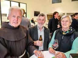 Raika Tirol Mitte West) 3 Pater Severin (l.) spendete den neuen Verkaufsräumen und der Werkstatt den Segen, hier im Gespräch mit Peter und Elisabeth Larcher 4 Erfreute MitarbeiterInnen: