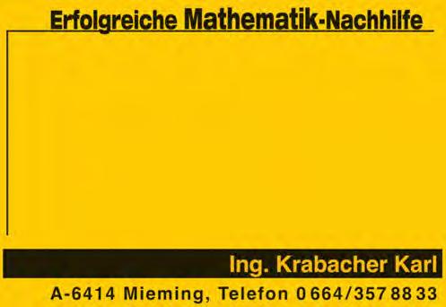 Schon seit dem Jahr 2000 weiht Ing. Karl Krabacher aus Obermieming SchülerInnen aus verschiedensten Schulen (von Mittelschule über Gymnasium bis HAK, HTL, Hochschulen und mehr) sowie aller Altersklassen bei der Mathematiknachhilfe in die Geheimnisse der Zahlen und Formeln ein und zeigt, dass viele Probleme gar keine sind.