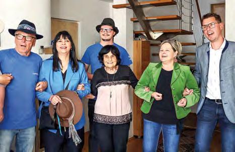 Am Foto oben die Jubilarin (M.) mit den Laningern und Bgm. Christian Härting (r.) beim stimmungsvollen Schunkeln.