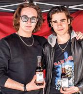 1 Auch die Jugend stand voll im Einsatz: Moritz Kohler und Philipp Schönherr servierten den Besuchern naturtrüben Apfelsaft und Säfte des Fließer Getränkeherstellers Tirolimo.