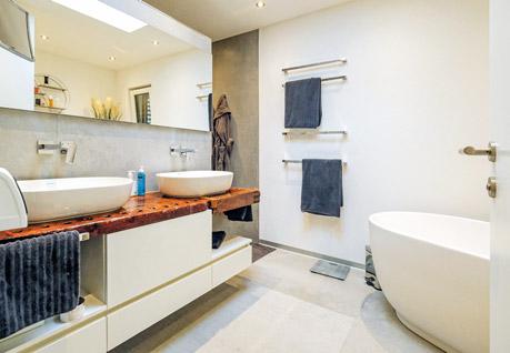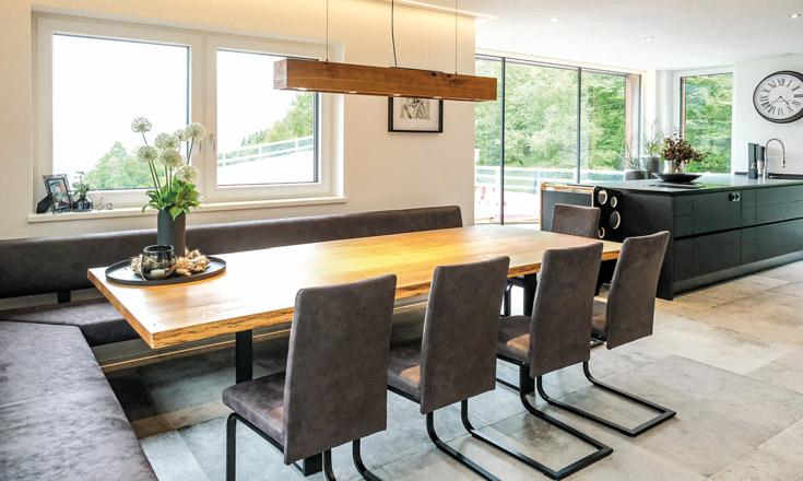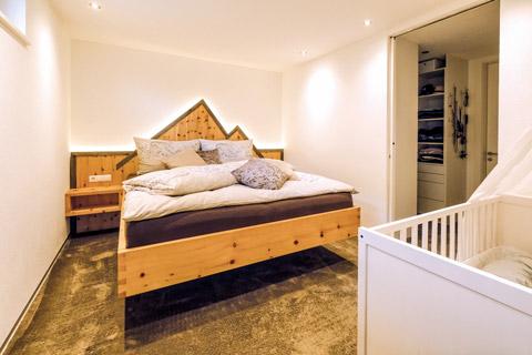 zimmer mit dazugehörigem Bad, Jagdstüberl, Waschküche, Lager und Garagen, im Obergeschoss Küche, Wohn- und Schlafzimmer, Elternbad, Gäste-WC und der Zugang zum Garten. Besonders geschätzt wird von der jungen Familie das viele Licht, welches die Räumlichkeiten in ihrem schicken Haus durchflutet. Und der Herr des Hauses hat auch eine eigene Werkstatt, wo er als gelernter Tischler gerne tätig ist. Was die Inneneinrichtung angeht, wurde nahezu alles von Alina ausgesucht, während Sebastian für