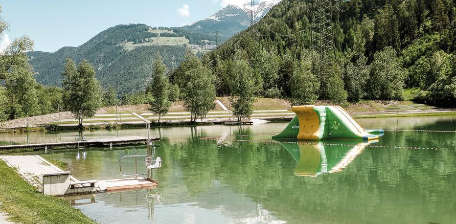 Poollift“ eine Vorreiterrolle. Ebenso entstanden zusätzliche Liegeflächen für Rollstuhlfahrer, die Fertigstellung war Ende Mai, pünktlich zur Badesaison. „Wichtig war uns, dass der natürliche Charme des Badesees erhalten bleibt und dass dieser ein Naherholungsgebiet ist – dies ist für uns eine qualitative Aufwertung“, erklärt Bgm. Patscheider. Übrigens wurde auch neu bepflanzt und der Badesee wurde um eine Seebühne erweitert, die künftig für Veranstaltungen genützt wird, etwa die touristische Veranstaltung „Lake Sun-