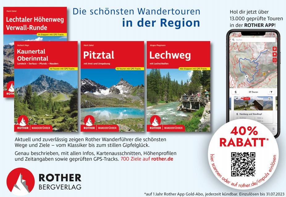 zeichnung mit Platin erhält nur, wer den 125 Kilometer langen „Lechweg – von der Quelle bis zum Fall“ (oder umgekehrt) in seiner Gänze bewältigt. Ist die Mindest-Punktzahl für die jeweilige Wandernadel erreicht, bekommen „Lechweg“-Wanderer die zugehörige Urkunde und den Überblick über ihre sportlichen Erfolge automatisch per Mail zugeschickt. Die Teilnahme ist kinderleicht: Die kostenlose App SummitLynx im App Store oder unter Google Play herunterladen, registrieren, loswandern und Punkte sammeln. Um unterwegs Einträge zu erstellen oder Fotos hochzuladen, benötigt man nicht einmal Netzempfang – das GPS-Signal genügt. Sobald wieder eine Datenverbindung besteht, werden die Inhalte automatisch im persönlichen Tourenbuch gespeichert.