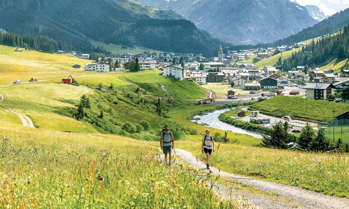 Nun verlassen die Wanderer Tirol und laufen in Richtung des Vorarlberger Walserdorfs Warth mit seinem historischen Walserhus und der sehenswerten Pfarrkirche. Von