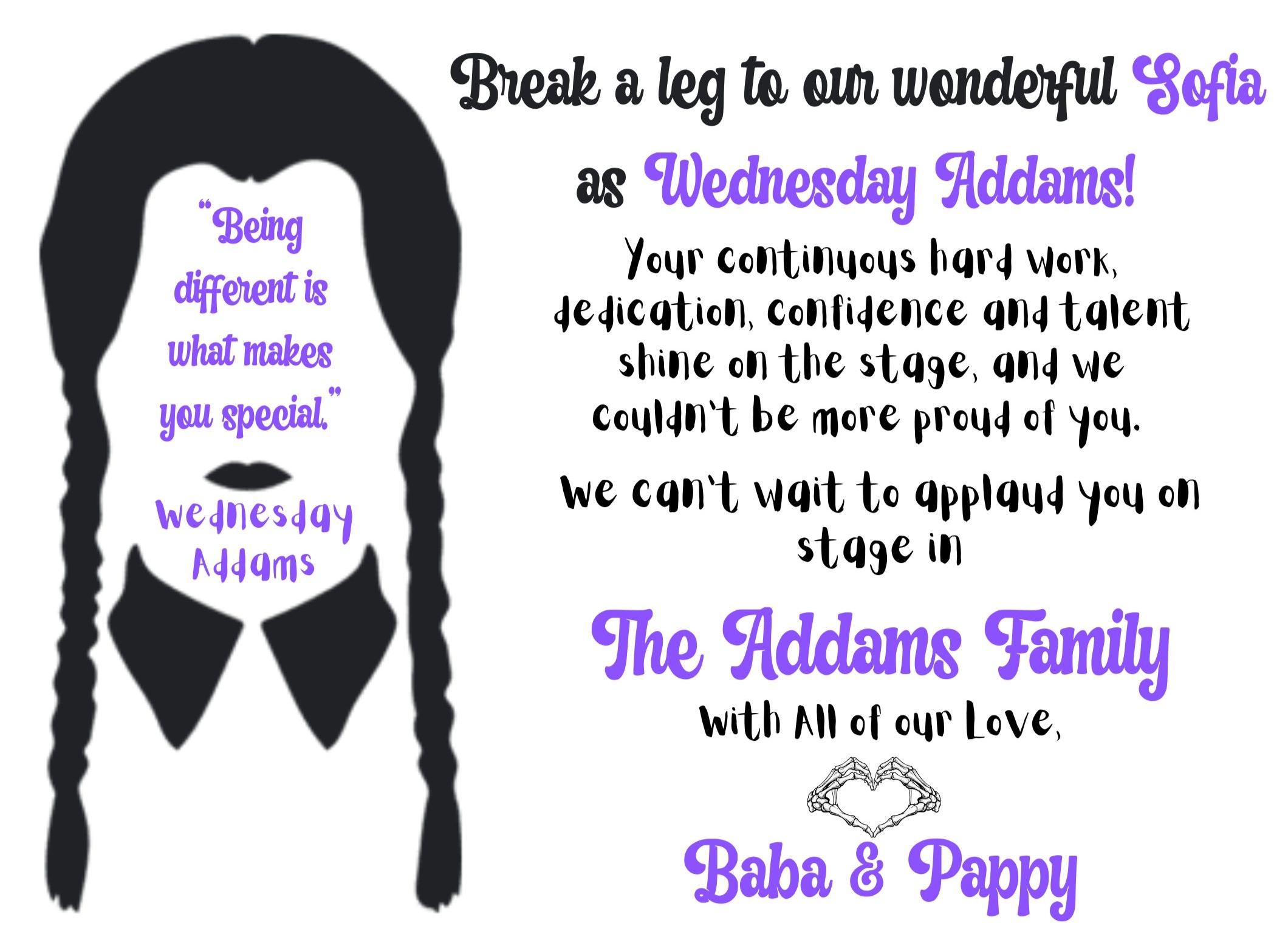 The Addams Family is presented through special arrangement with and all authorized performance materials are supplied by Theatrical Rights Worldwide, 1180 Avenue of the Americas, Suite 640, New York, NY 10036. (866) 378-9758 www.theatricalrights.com