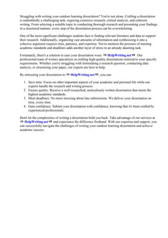 Outdoor Learning Dissertation Example