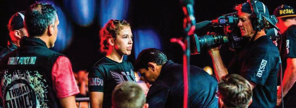 Thousands of people in the arena and countless others watching the pay-per-view event hear her name over the loudspeaker, as she feels the canvas mat beneath her bare feet and takes note of the padded ropes boxing her in. Beyond the ring, an entire section of the Broomfield arena is waving blue towels bearing her name.