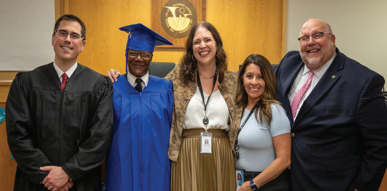 On the day of Frazier’s graduation, she put on a cap and gown and proudly strutted through the courtroom while Pomp and Circumstance played over the speakers. Wellness Court participants cheered her on, imagining themselves following her footsteps in a year’s time.