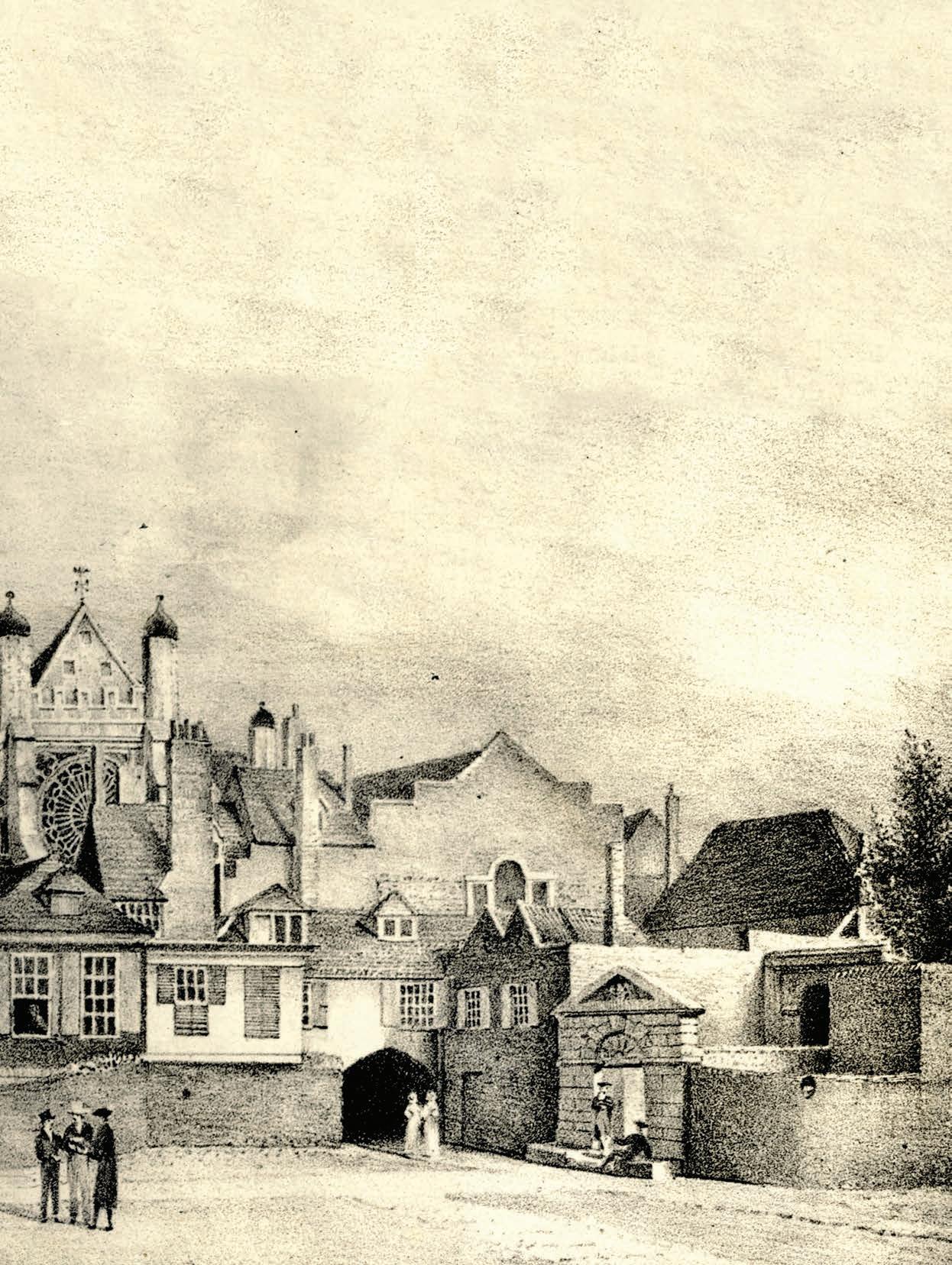 Following Henry VIII’s dissolution of the monastery at Westminster in 1540, the kitchen was no longer needed, although it may have been used during his daughter Mary’s brief reign. At some point in the late 16th century, the building must have been demolished. A lease assigned to William Ashburnham in 1663 for the former Prior’s House mentions “a piece of ground on the west side towards the school garden”. This confirms that the bulk of the space once occupied by the Great Kitchen was then associated with No. 19 Dean’s Yard, now known as Liddell’s House, but at that point serving as the Head Master’s residence. Later, a boarding house kept by Mrs Playford occupied the south side of the site, until it was demolished in 1847. At this point, a new garden was laid out for the benefit of Henry George Liddell, who had recently become Head Master.