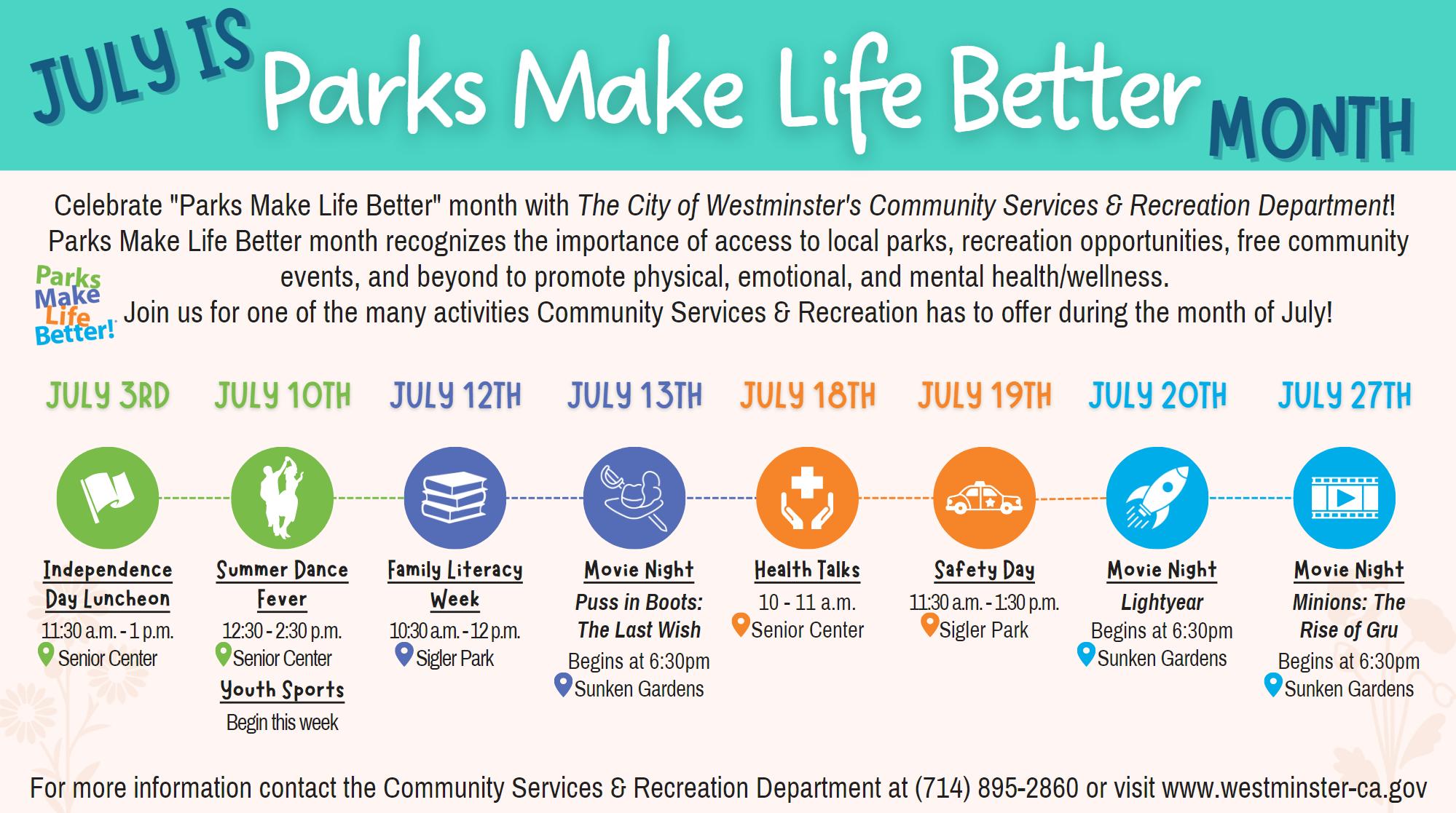 This summer the Community Services and Recreation Department will offer an array of FREE programs and events for eight weeks.