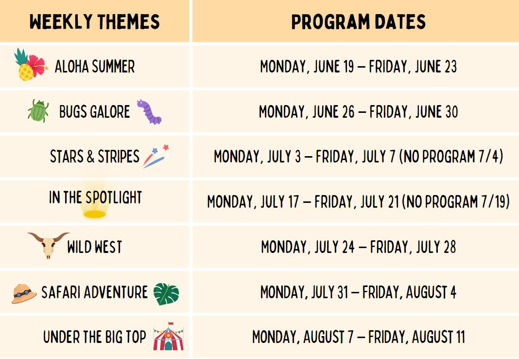 * Due to the nature of the activities, there are no refunds on Excursions, Youth Sports, and Aquatics.
