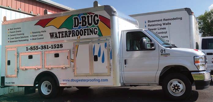 Inside French Drains/ Outside French Drains Purging & Sealing Walls Cement Finishing (Driveways, Sidewalks, Porches) Downspout Lines Foundation Piering Floor Drains Sump Pumps (Repairs) Outside Surface French Drains Cement Sidewalks & Porches Storm Drains & Catch Basins Curbing Regrading (Excavation) Support Pushed Foundations with I Beams Install Concrete Retaining Walls for Pushed Foundations Camera Sewer Lines DBugwaterproofing.com INTERIOR & EXTERIOR BASEMENT WATERPROOFING “Get It Done Right The First Time” Written Warranty & References Provided Before After PA#017989 Visit our website and watch our video: www.DBugWaterproofing.com FAMILY OWNED AND OPERATED FAMILY OWNED AND OPERATED WE WILL BE HERE 5, 10, 20 YEARS FROM NOW WE WILL BE HERE 5, 10, 20 YEARS FROM NOW D-Bug Waterproofing Also Does: Financing Available Through Kecksburg 724-424-9442 Uniontown 724-437-2716 Belle Vernon 724-929-5808 Johnstown 814-539-6374 Somerset 814-443-1923 Irwin 724-863-4196 New Kensington 724-337-4874 Latrobe 724-539-8971 Greensburg 724-838-5359 Indiana 724-349-3127 Mold Remediation Foundation Repair French Drains Hardscape Excavation Installation of New or Existing Basement Entrance Ways Replace Pushed Foundation Window Wells Glass Block Windows Wall Anchors Bilco Doors for Basement Entranceways Basement Remodeling Moisture Proofing E-Z Breathe Ventilation Systems in Basements & Crawl Spaces Painting Foundation Replace & Install Sewer lines Crawl Space Remediation (sealing of crawl spaces and French drains) Repainting Brick & Stone Mold Remediation (replace mold covered drywall) FREE ESTIMATES PAY ONLY FOR NECESSARY REPAIRS! TOLL FREE 1-855-381-1528 BBB Runner-Up for 2010 Torch Award for Marketplace Ethics