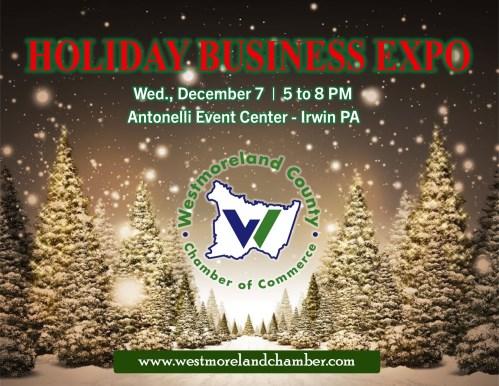 www.westmorelandchamber.com Wed., December 7 | 5 to 8 PM Antonelli Event Center Irwin PA SPONSOR PACKAGES AND VENDOR SPACES STILL AVAILABLE! $30 PREMIUM ADMISSION Includes Hors D’oeuvres, Shopping with Exhibitors, Prizes, and Networking $15 BASIC ADMISSION: Includes Shopping with Exhibitors , Prizes, and Networking
