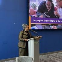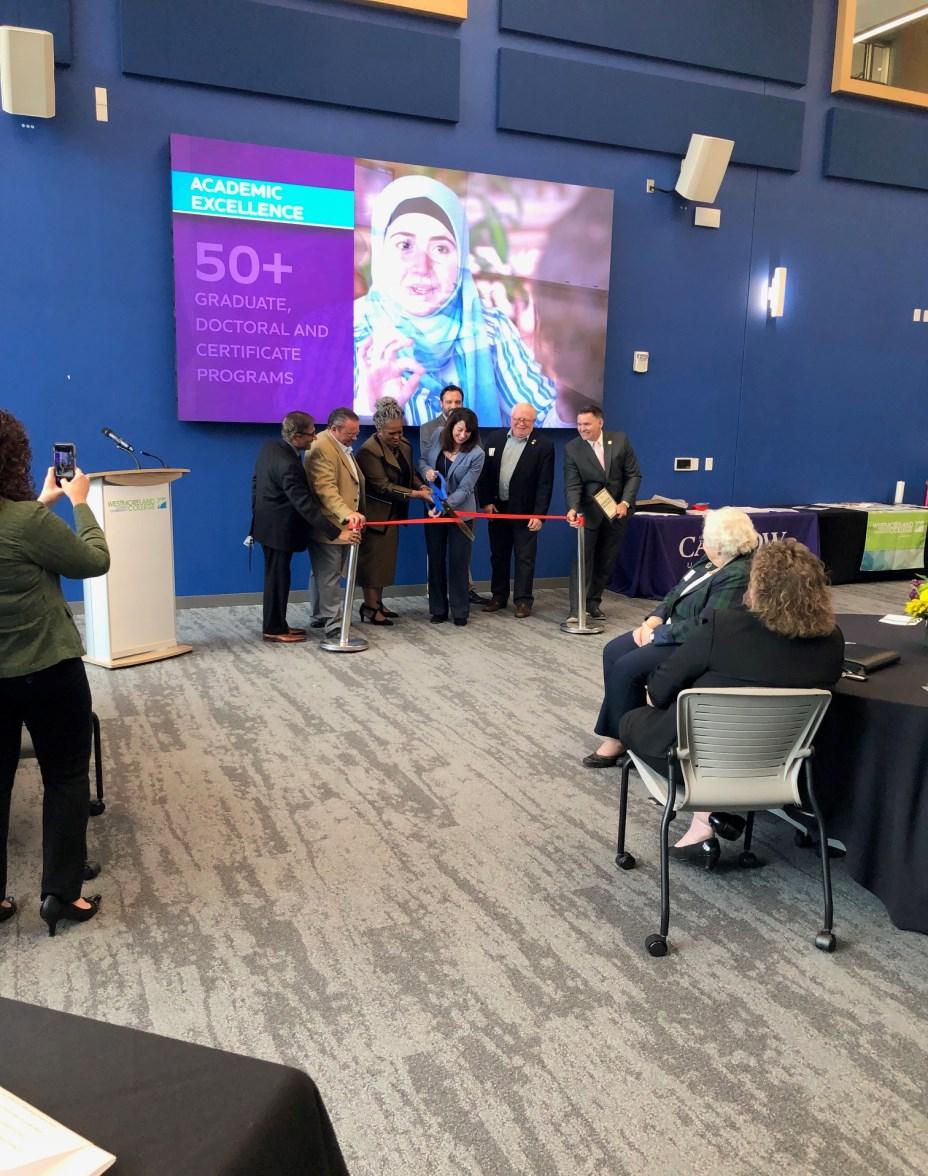 Carlow University President, Kathy Humphrey speaks at the Ribbon Cutting and Reception on October 4 at Westmoreland County Community College to celebrate the joint venture between the two institutions.