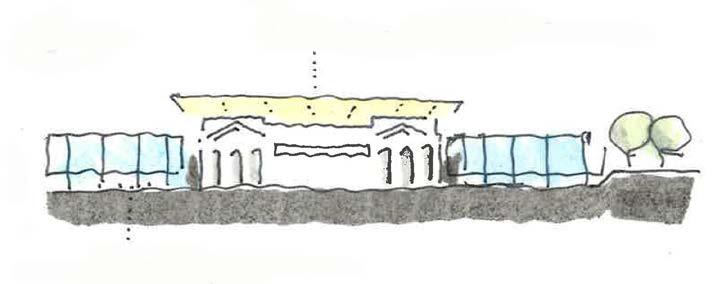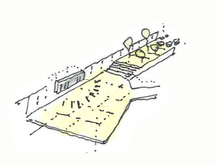 → Activate frontages onto Arrivals Road or improve connection to Lawn. Consider covering the area in whole or part to improve passenger experience and impact as station entrance