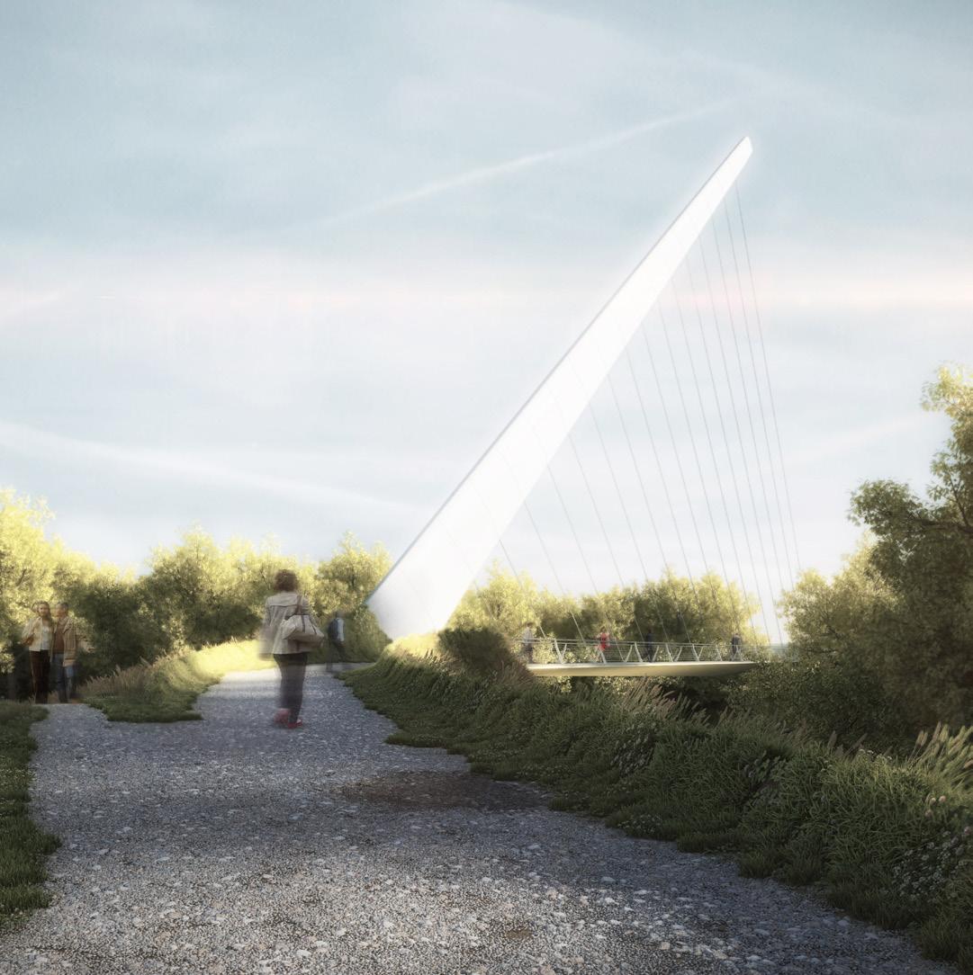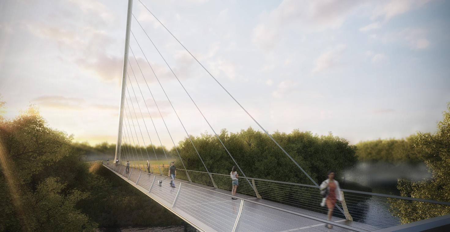 The new pedestrian bridge across the River Irwell sits at the centre of Irwell River Park, which will create an international waterfront destination catalysing the economic resurgence of the Manchester City region.