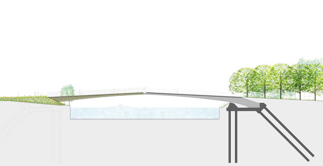 The viaduct allows for all users with pedestrian and cycleways cantilevered along the outer edge. These walkways provide a shared surface for pedestrian and cyclist, as well as being future-proofed to allow for a segregated cycleway to connect to local cycle networks in the future.