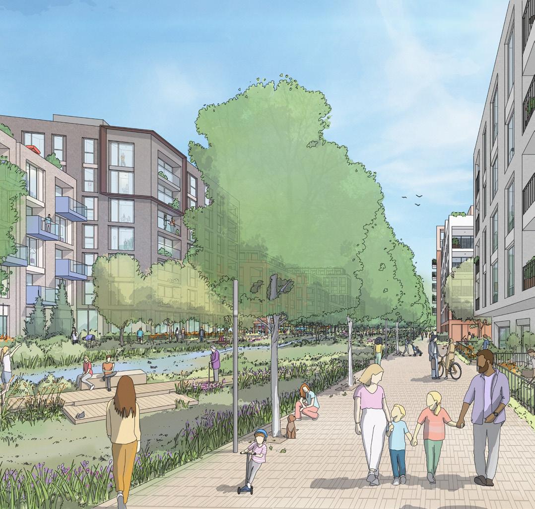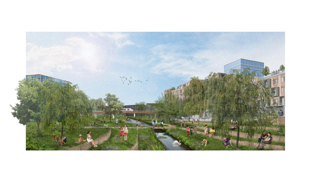 Commercial opportunities for a new airport city leverage connectivity to global markets. We created a walkable public realm and network of green corridors providing local connectivity to business communities, attracting inward investment, and a catalyst of regional growth.