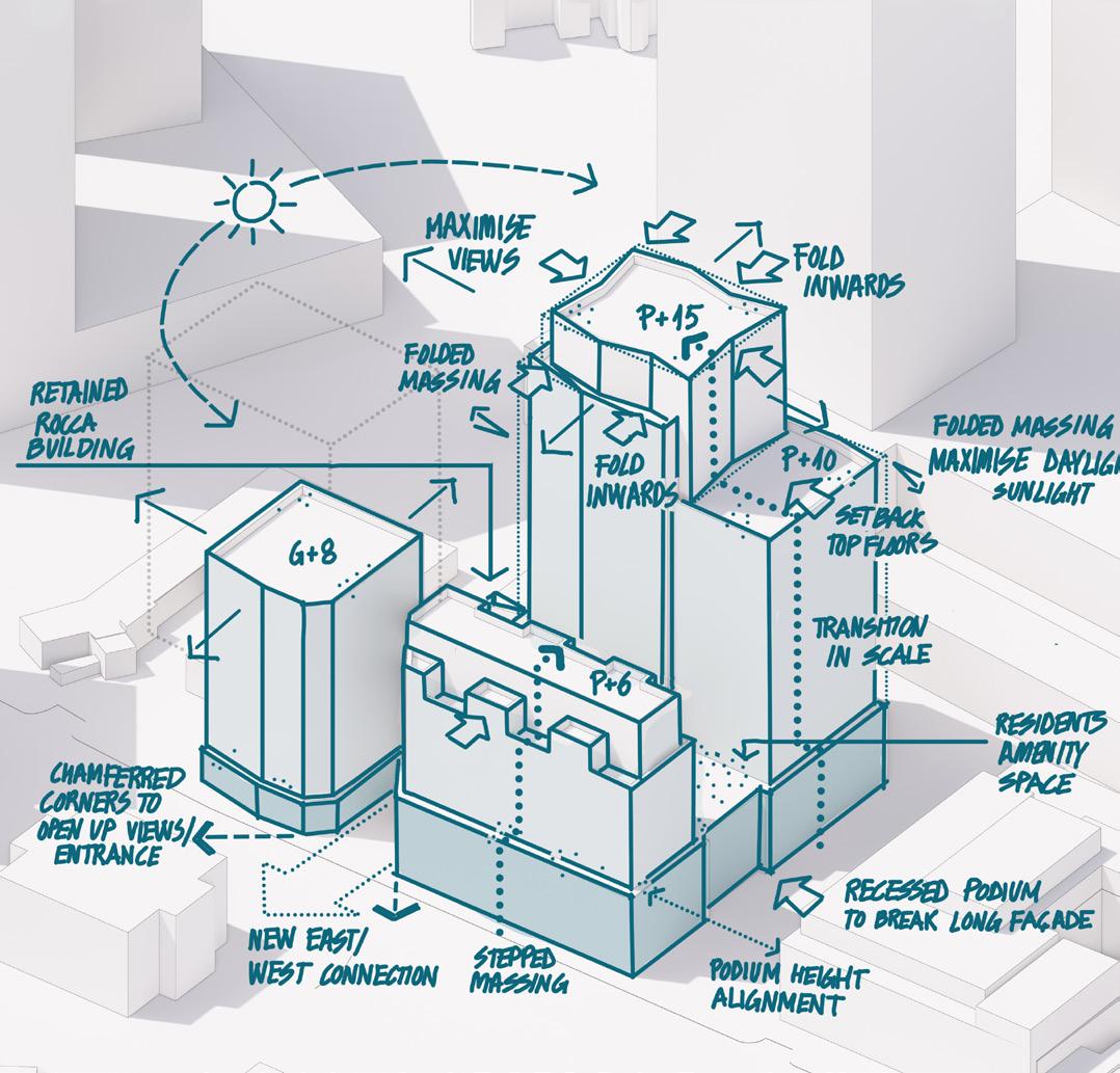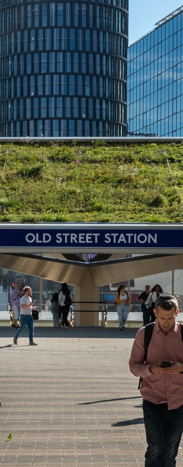 To address the complexities of building above a station we used a grid solution which complied technically and provided flexibility to enhance and define the built form. The use of lightweight Glass Reinforced Concrete was critical to meeting building constraints and achieving planning approvals. Through new terraces we provided much needed green space to achieve biodiversity net gain, and used Sustainable Drainage Systems to achieve an Excellent BREEAM rating and WELL Gold standard.