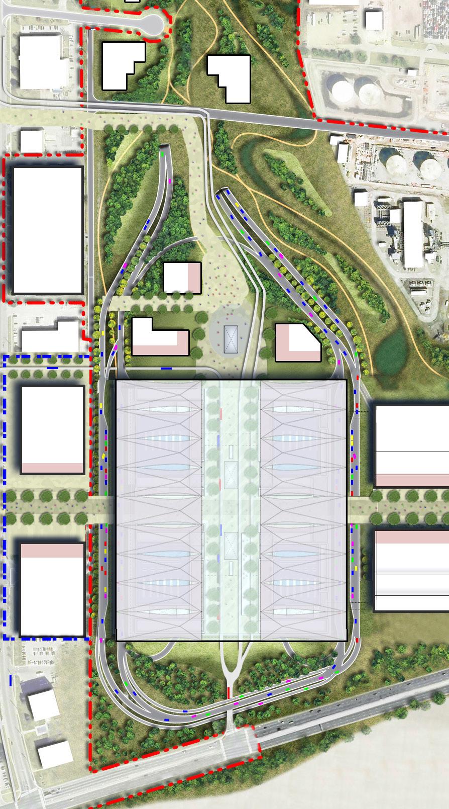 The Ebbsfleet area is filled with constraints that make creating a cohesive and long-term masterplan a challenge. The existing conditions including the changes in levels, protected environmental areas, possible land contamination, and the potential future changes such as the new London Resort link road, and HS1 car parking reprovision all need to be addressed in a coherent manner.
